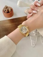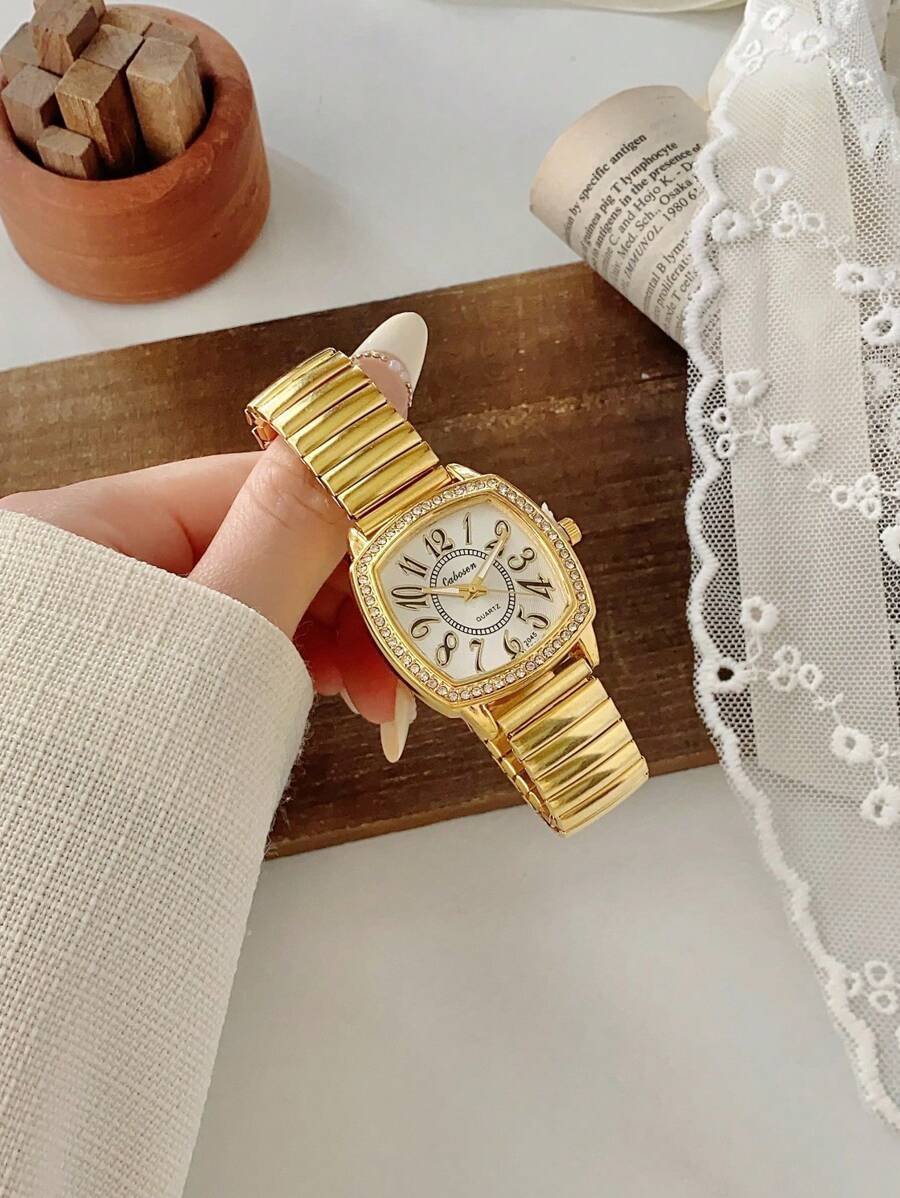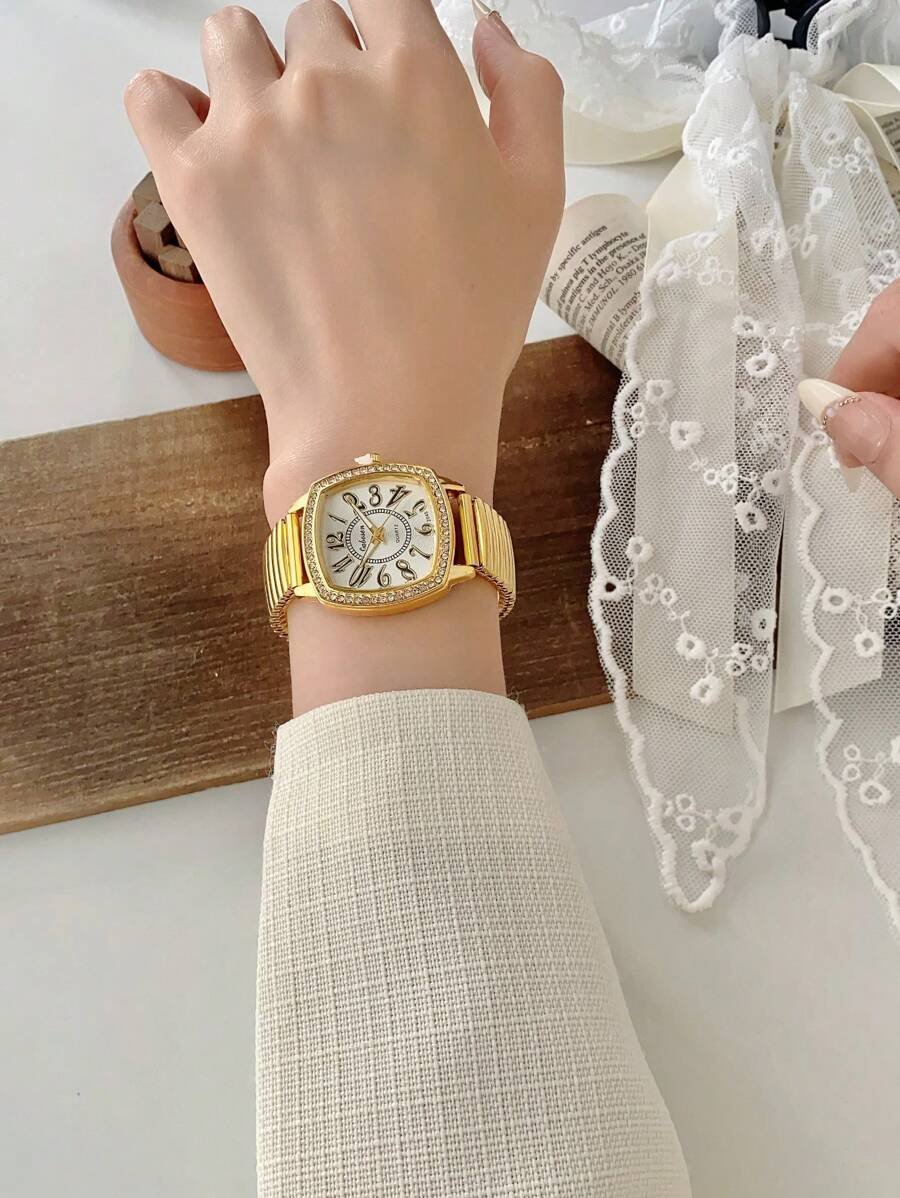تقدم لكم هذه الساعة النسائية الرائعة، التي تجمع بين الأناقة والعملية . تصميمها المربع الفريد يبرز جمال المعصم، بينما تضيف تفاصيل حجر الراين لمسة من الفخامة. تناسب هذه الساعة الاستخدام اليومي بشكل مثالي، مما يجعلها الخيار المثالي للسيدات الباحثات عن الأناقة والراحة.